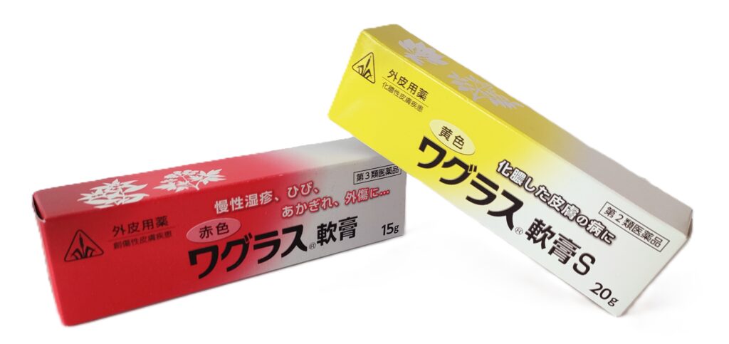 赤色ワグラスは乾きやひび、あかぎれ、湿疹などに、黄色ワグラスは化膿やじゅくじゅくをともなう皮膚トラブルに使われます。
